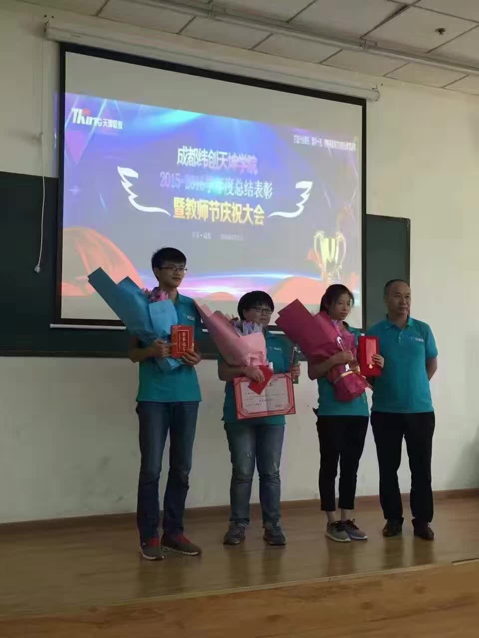 赵文博校长代表学校做工作总结。赵校长从2016年高考取得的辉煌成绩、学校制度建设、师资队伍建设、专业建设、教学管理、学历培训和技能培训、新校区建设和精准扶贫等方面,对过去一学年度学校工作进行了全面总结,对学校下一步工作进行了规划,号召全体教师在政府和天坤集团的领导下努力工作,再创佳绩。会上,天坤职教集团孙义总裁宣读了集团《关于表彰先进集体和先进个人的决定》:学校政教处被集团授予“先进集体”荣誉称号;蔡胜先、唐科霞等老师被集团授予“先进个人”荣誉称号。京山县人大副主任许梅生、副县长易红梅、教育局副局长陈金龙;天坤国际控股集团董事长兼总裁王云雷、天坤国际职业教育产业集团执行总裁孙义、督导中心总监梁忠、京山天坤职校校长赵文博等领导为获表彰者颁奖;天坤园丁奖获得者唐科霞老师代表获奖教师发言。