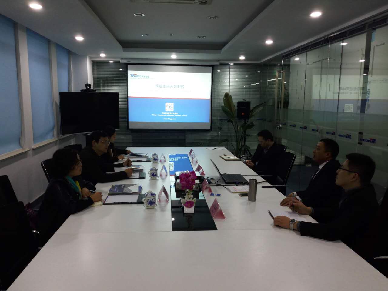 2015年11月9日下午,兴文县职业技术学校校长许奇、副校长朱潇、办公室老师李映雪莅临天坤国际参观考察,天坤国际职教集团执行总裁孙义、事业发展中心拓展部副主任李奎等全程陪同。在参观了集团总部、观看了集团宣传片之后,座谈会上孙总详细的介绍了天坤国际及天坤职教集团的情况;许校长听了孙总的介绍后对天坤职教有了新的认识,向孙总介绍了兴文县职业教育的现状及发展战略,也更深入的交流了PPP等合作办学模式。座谈会上双方达成发展特色职业教育的共识,后期双方会进一步沟通交流,寻求合作办学的机会。