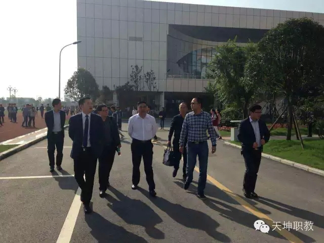 乐山市马边彝族自治县教育局局长李灵、人事劳动局局长邓寿亮、就业局局长胡太乾、工业集中区管委会主任罗宁、学校校长李萍陪同考察碧桂园职业中学。