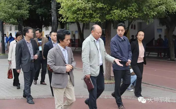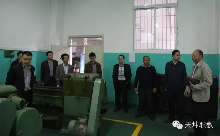 考察组一行在副县长黄刚、政府办副主任李咏雪的陪同下参观了我校内务管理,校园文化建设,后勤服务中心,学校附属幼儿园,校企合作的服装厂及学生实训室。