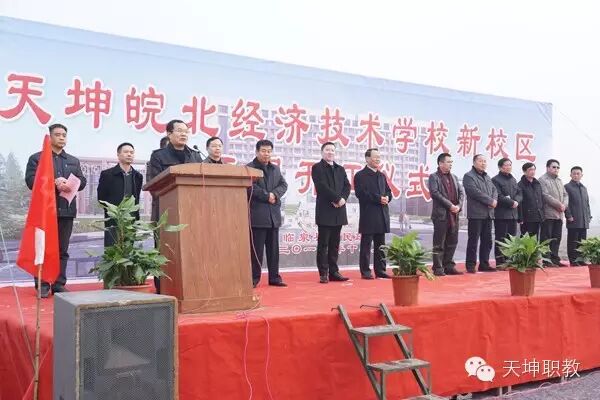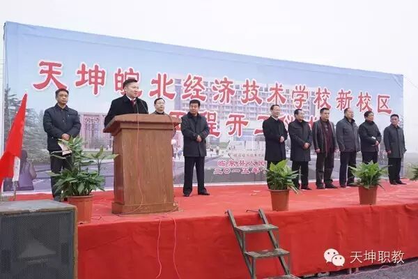 2015年12月29日,天坤皖北经济技术学校新校区奠基仪式在安徽临泉县隆重举行。市委副书记叶露中、县委书记邓真晓、县长梁永勤、天坤国际控股集团董事长兼总裁王云雷以及县相关部门主要领导参加了本次仪式。王总作现场发言。