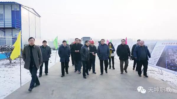 早上八点半,小雪初晴,朝阳普照,王书记一行驱车来到天坤皖北经济技术学校新校区建设工地,实地查看了工程建设情况。新校区建设项目施工单位负责人向王书记一行介绍了目前的施工情况,临泉县人大主任县委书记邓真晓向王书记介绍了临泉县人民政府委托天坤国际控股集团管理皖北经济技术学校和该校新校区建设的大致情况,天坤皖北经济技术学校校长郭颖超向王书记一行介绍了学校托管以来的情况,详细说明了天坤国际控股集团旗下的优蓝网助力临泉县政府组织的“接您回家,筑梦临泉”活动的方案、具体实施措施和该活动可以让临泉广大外出务工人员足不出户利用手机在家就能找到工作的情况,并现场给王书记演示了如何通过手机APP加入优蓝网会员的操作过程。