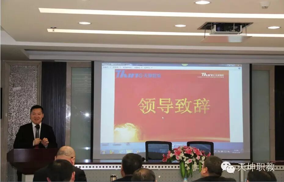 2016年1月26日上午,天坤职教集团在上海总部召开2015年秋期工作总结暨校长述职大会。天坤国际控股集团董事局主席王云雷先生、执行总裁田正军先生、监事会主席程坚教授、战略投资副总裁方毅先生,天坤职教集团执行总裁孙义先生、京山天坤职业技术学校校长赵文博先生、天坤皖北经济技术学校副校长李玉涛先生、纬创天坤学院院长耿忠先生、和硕天坤学院院长罗勇先生、职教集团上海总部各位同事及各学校代表出席此次大会。