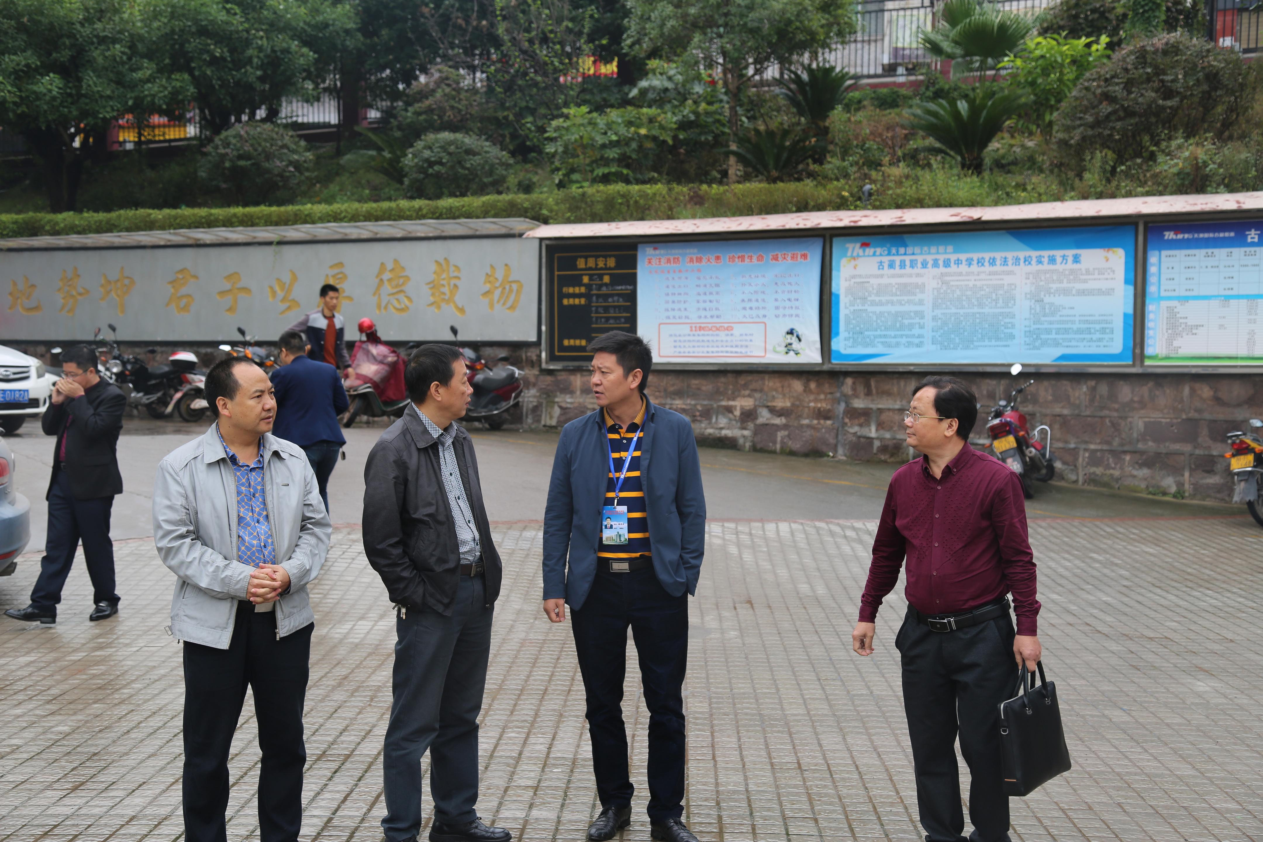 2016年10月11日,富顺县职教考察团莅临天坤古蔺职高考察指导。富顺县教育局副局长廖刚华带队,富顺职业高中校长官中华等一行四人实地参观了古蔺职高学生实训基地、设施设备、教育教学活动,详细询问了2009年天坤托管以来学校的变化发展情况,古蔺县教育局局长王鑫等陪同参观考察。