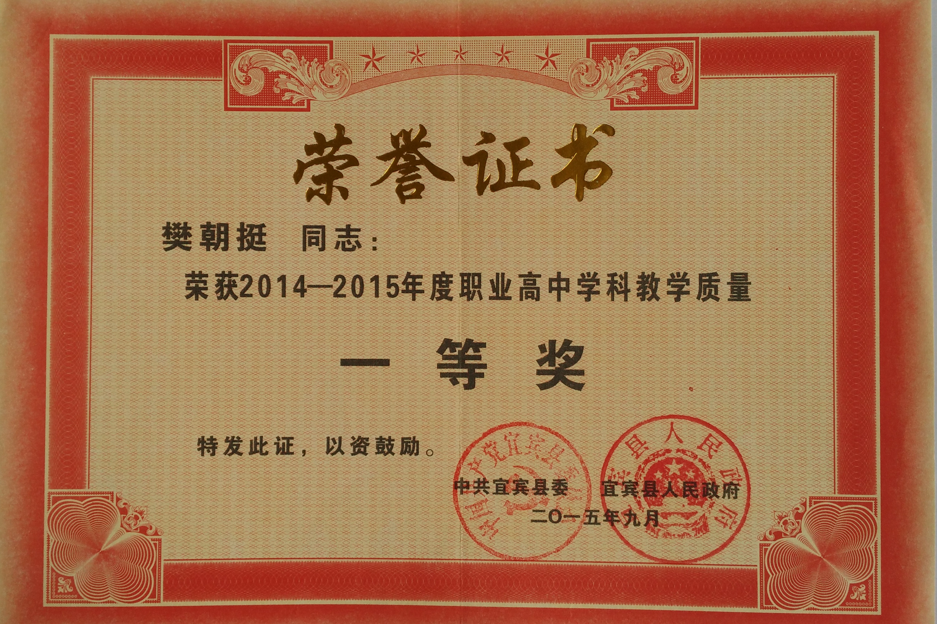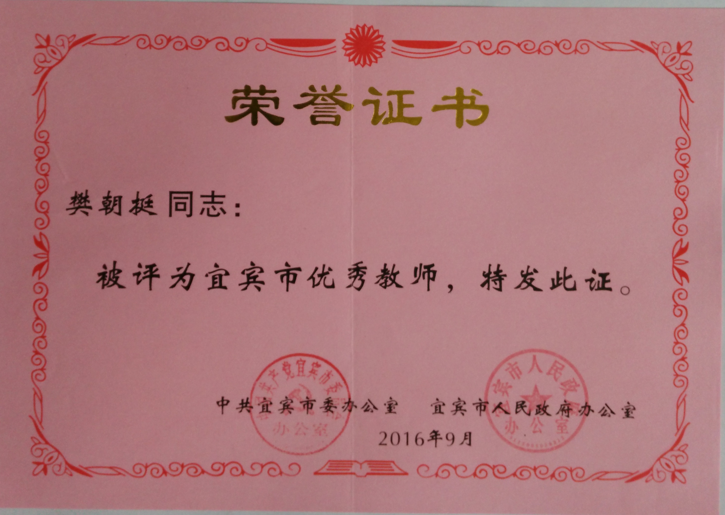 樊朝挺,男,西南大学英语专业本科毕业,中学英语高级教师。现任宜宾县高场职中英语学科负责人,宜宾市中职英语教学指导组副组长。宜宾市优秀教师,宜宾县名师、优秀教师、爱岗敬业教师、德育先进工作者、三星级班主任、优秀技术教育岗位能手。