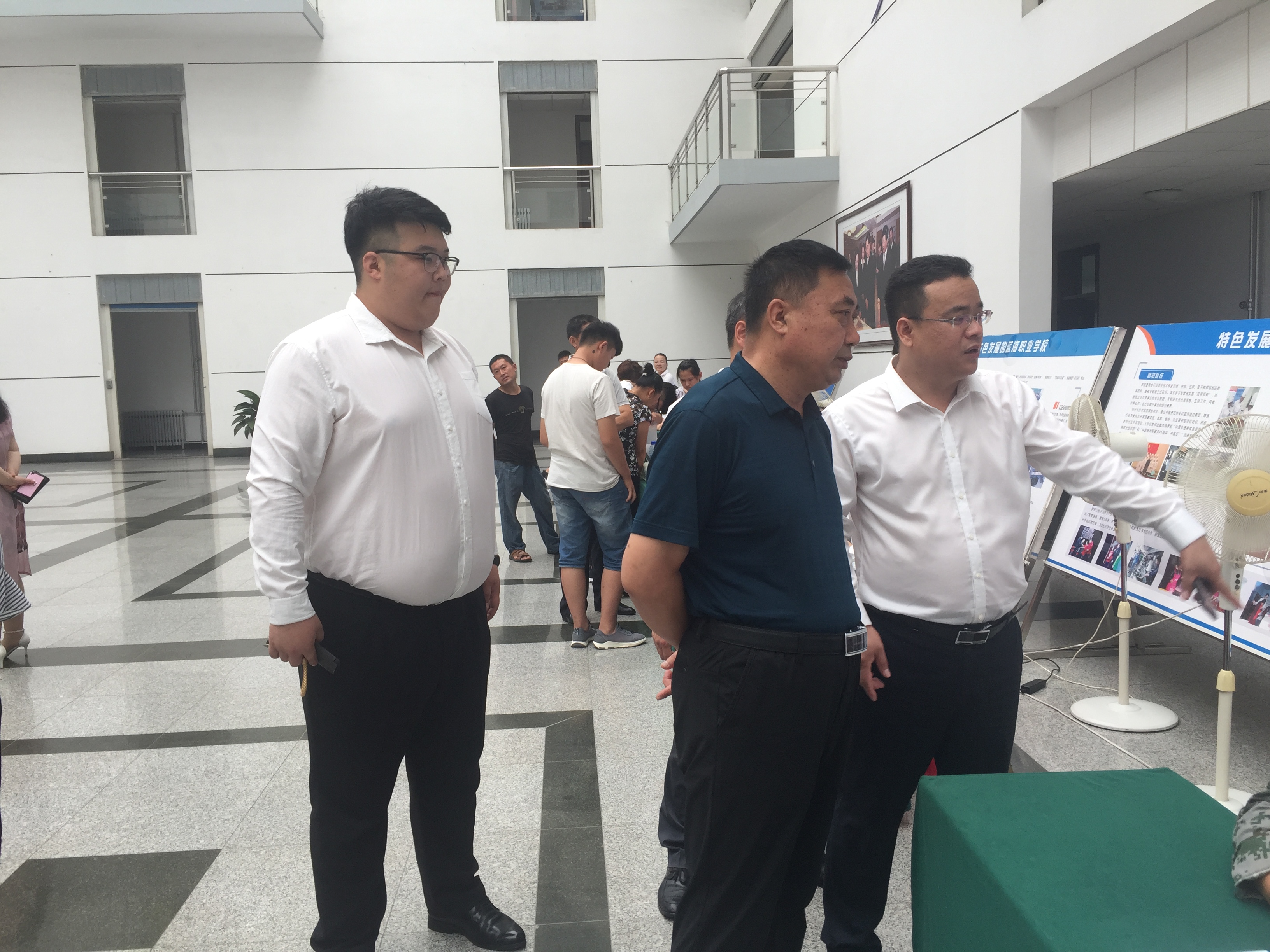 孙总一行在山东蓝海酒店集团人力资源管理部副部长杨兆永的陪同下赴其下辖的蓝海职业学校进行参观考察,详细了解学校基础建设、教育教学、实习实训、生活配套等设施。