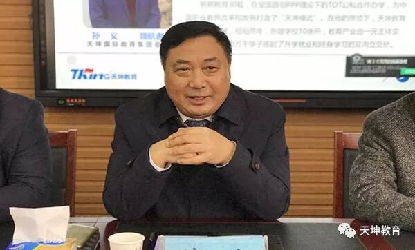 天坤国际教育集团总裁孙义对源汇区中等专业学校加入天坤大家庭表示热烈欢迎,就天坤教育发展情况向参会教师作介绍,并重点围绕“学校国有资产性质不变、教师公办教职工身份不变、政府对公办职业学校财政投入不变”核心分享了合作办学模式,管理运行机制以及合作对学校发展、教师个人发展的优势。他希望全体教职工迅速转变思想、统一认识、快速融入、齐心协力,共同谱写源汇职业教育新篇章。