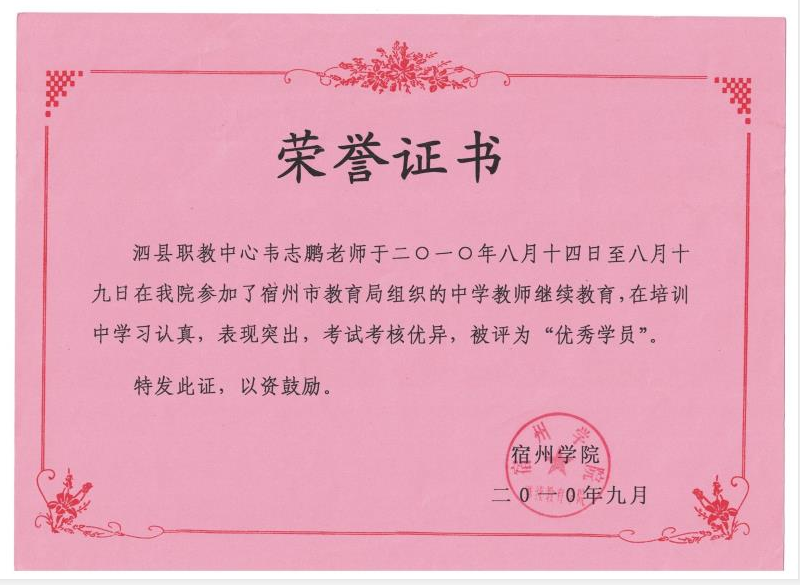 执着杏坛 乐于奉献—记宿州环保工程学校韦志朋老师