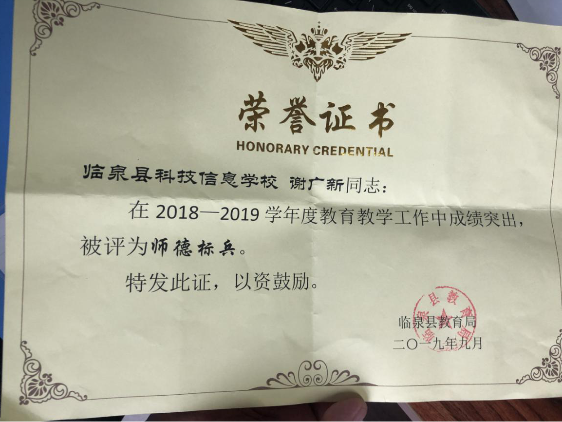 个人还被评为最美老师,师德标兵、优秀教师等,在近两年先后取得了:2018年9月 优质课《任意角的三角函数》荣获阜阳市二等奖,2018年9月 《论文浅析微信在职业高中数学教学中的应用》县级三等奖,2019年9月 优质课《正弦定理》市级三等奖,2019年9月 论文《对中职数学和高职数学课程衔接问题的初探》荣获阜阳市二等奖,2019年9月 被授予“天坤优秀教师”,2019年9月 县级“师德标兵”2020年4月 论文《中职数学教学学生数学应用意识的培养》在省级刊物《课程教育研究》上发表。
