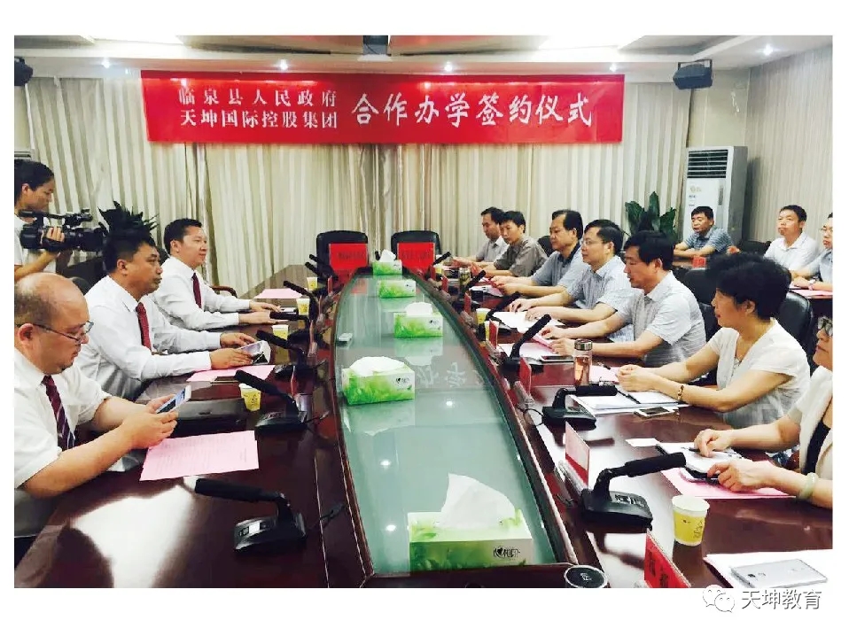 安徽省临泉县位于皖西北豫皖两省八个县市交界处,是全国第一人口大县,也是国家级贫困县,由于当地工矿企业少,每年有80多万人外出务工,但由于缺乏专业技术,主要从事非专业技术工作,工作环境差待遇低。为改变现状,临泉县委县政府高瞻远瞩,将发展职业教育、技能培训作为阻断贫困代际传播和托起民生底线的重要抓手,为职业教育发展创新顶层设计,2015年8月3日临泉县人民政府与天坤正式签署合作办学协议,将该校以新型PPP模式交由天坤教育集团全面运营管理。自托管以来,天坤教育引入先进的教学理念和管理机制,为该校注入活力,学校成为江淮大地职业教育的一匹黑马,在中国职业教育界产生了重大影响,先后有国家、省、市各级领导莅临考察。