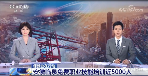 7月2日,中央电视台朝闻天下栏目以《保就业在行动 安徽临泉免费职业技能培训近5000人》为题报道了天坤皖北经济技术学校免费为群众进行职业技能培训的故事。