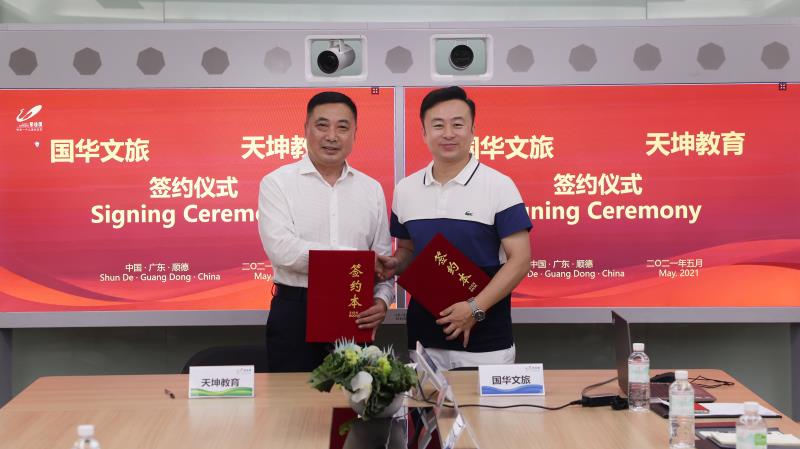 5月24日,天坤教育和碧桂园集团战略合作签约仪式暨碧才天坤教育管理科技有限公司成立仪式在碧桂园集团总部举行,碧桂园国华文旅集团总裁王鹏和天坤教育总裁孙义共同签署战略合作协议。广东省国强公益基金会理事长陈翀、国华文旅集团副总裁王传勇、盈睿资本投资总监王浩、天坤教育慧眼科技总经理周厚强及碧桂园国华文旅集团相关领导出席并鉴证了这一历史性时刻。
