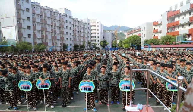 8月22日上午,集团古蔺职高2015级新生军训开营仪式隆重举行。学校党支部书记、校长明祖宽,校长助理张勋,安保主任陈翰,德育主任杨邦均等校领导以及承担此次军训任务的县武警中队官兵出席了开营仪式。