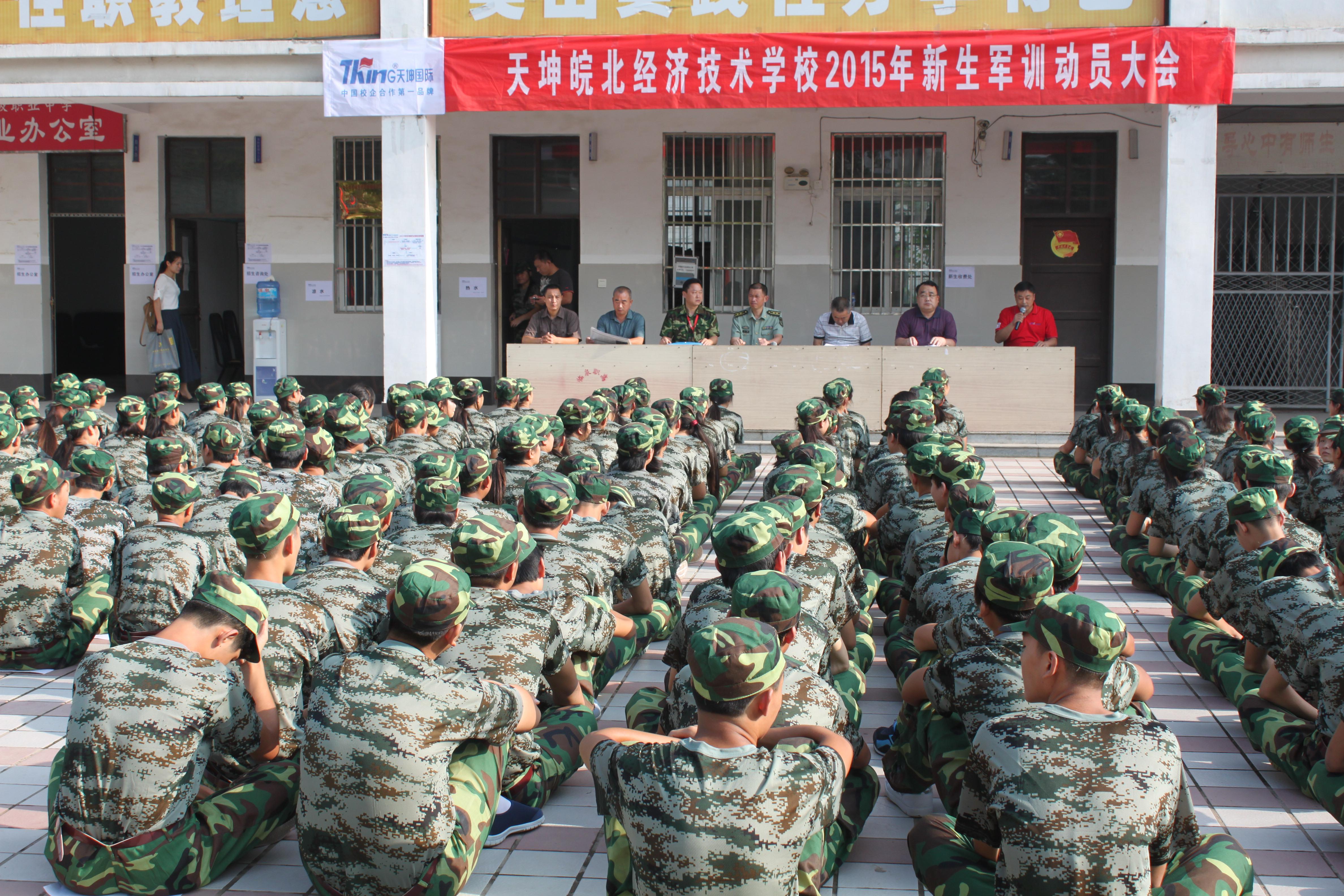 8月21日上午,天坤皖北经济技术学校的校园内红旗飘飘,学校召开2015级高一新生军训动员大会,临泉县武装部、教育局和学校有关领导出席了动员会。
