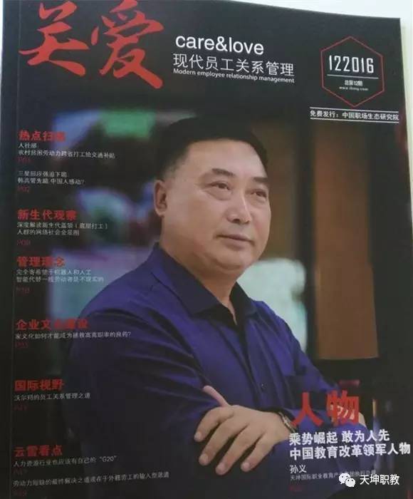 近日,天坤教育集团执行总裁孙义接受了《现代员工关系管理》杂志的专访,孙总谈了自己对职业教育的看法并解析了天坤职教模式,下面让我们一起来了解中国职业教育改革开拓者-孙义。